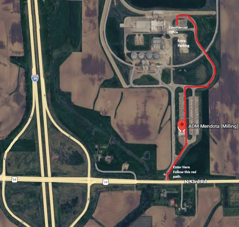 3004 E 12th St, Mendota IL 61342 (Sometimes the best address for GPS is 581 N 43rd Rd, Mendota IL 61342). The plant is located just East of I-39 exit 72 on US Route 34. Please meet at the Commercial Office. There is additional parking in the lot south of the office; please see the attached map.
